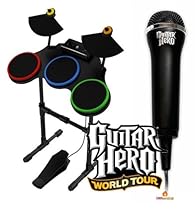 You'll be in rock and roll heaven with this package. The Guitar Hero World Tour drum kit includes a wireless controller battery and a microphone. The game (not included) has advanced modes, options and tools for your rocking pleasure. Enjoy a large amount of master recordings from some of the greatest acts of all time as Van Halen, Linkin Park, The Eagles, Sublime and more. The game will also offer more localized downloadable music than ever before. Guitar Hero World Tour gives you license to fully customize Creative appearance of characters and all instruments for the band logo and album covers. The innovative Music Studio lets you compose, record, edit and share music. The streak struggle allows up to eight players enter into chaos.